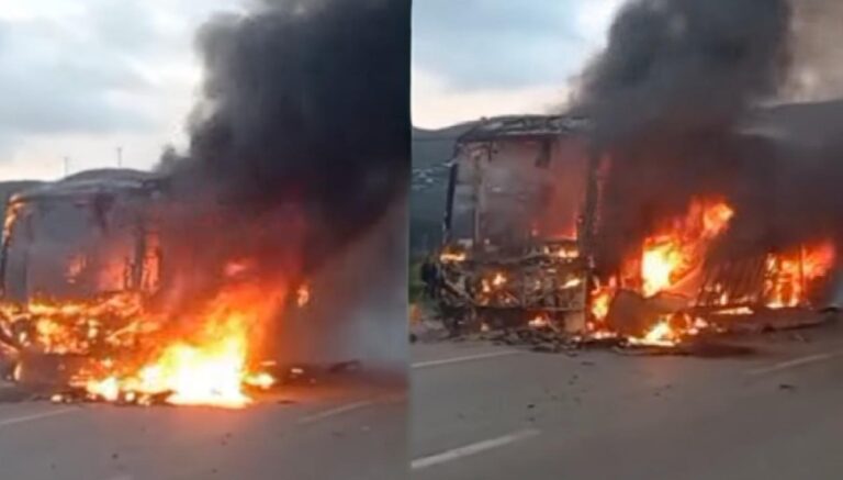 احتراق حافلة مسافرين بالكامل بين تطوان وطنجة