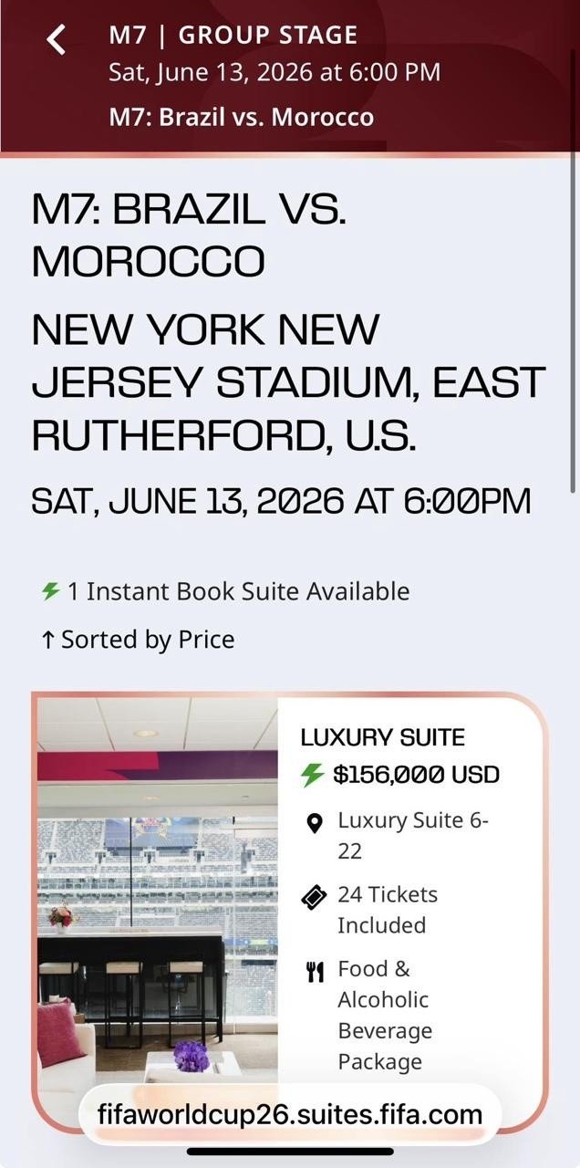 المباراة المقررة يوم السبت 13 يونيو 2026 على أرضية ملعب نيويورك نيو جيرسي ستاديوم في إيست روثرفورد، تتيح لحاملي هذا الجناح الفاخر تجربة فريدة تشمل 24 مقعدًا مع باقة طعام ومشروبات كحولية، ما يجعل التذكرة بمثابة رمز للترف والطبقية في المونديال.