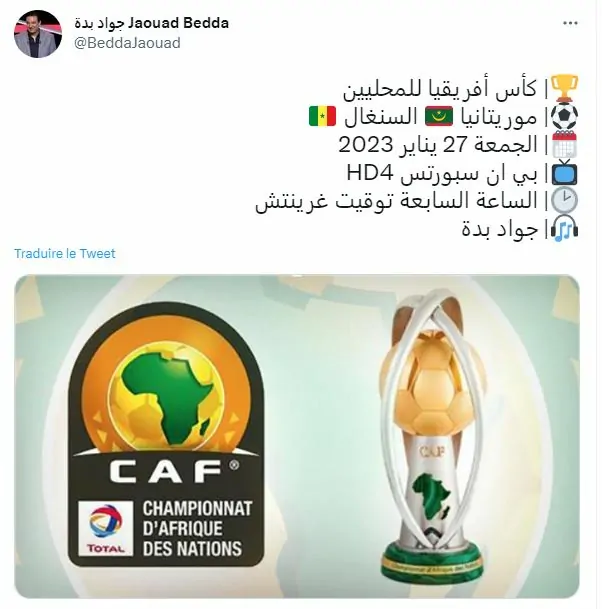 الرد القطري لم يتأخر، حيث قامت يتعيين جواد بدة كمعلق على المباراة التي ستجمع الجمعة بين منتخب السنيغال وموريتانيا ضمن الدور الثاني لذات البطولة.